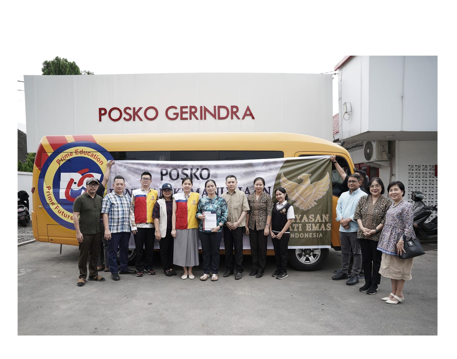 Pembina Yayasan Hati Emas Meriyawati Amelia Prasetio atau Bunda Yin, yang juga Bendahara DPD Partai Gerindra Sumatera Utara, didampingi pengurus Yayasan Hati Emas, Rudi Zulham, Hendy Ong dan jajaran, menyatakan salut dengan Solidaritas kepedulian keluarga besar Prime One School atas bencana yang terjadi.